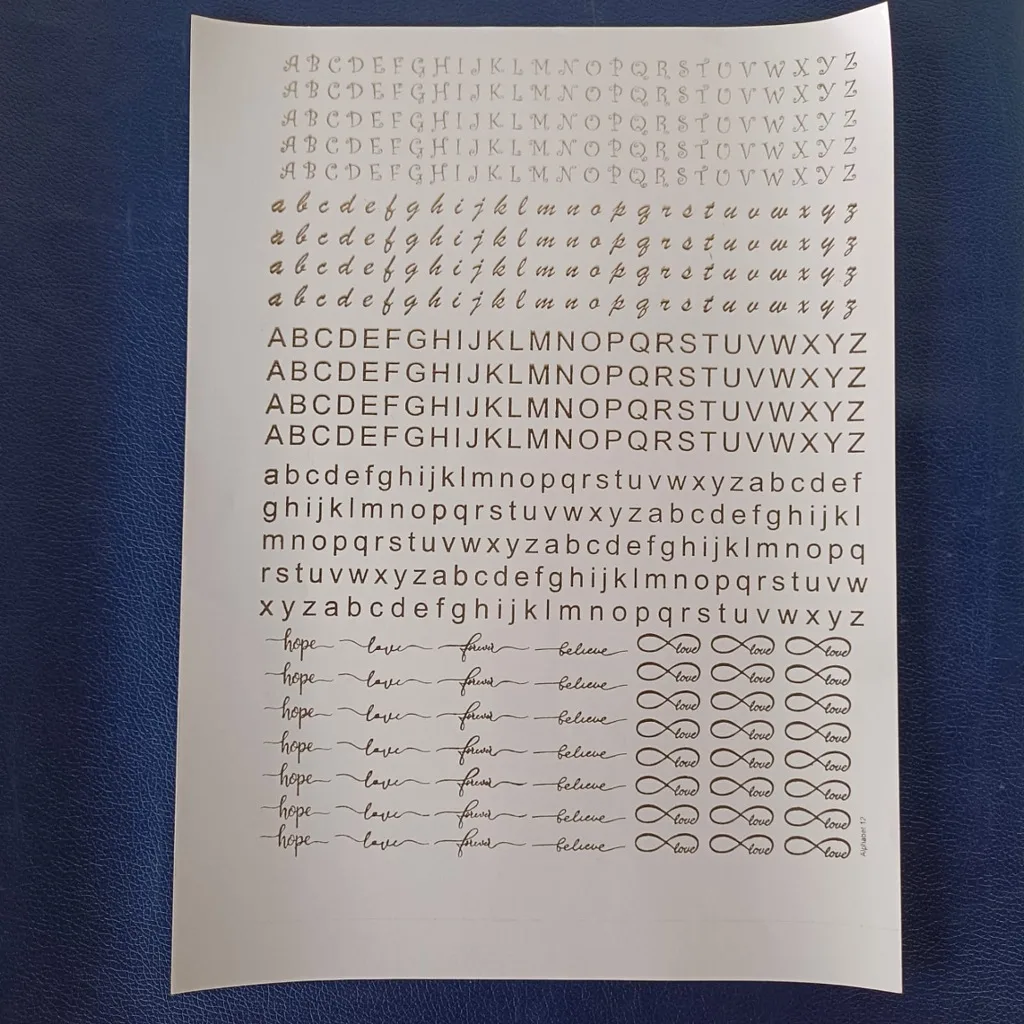 This A5-sized sheet includes neatly designed alphabet letters (A–Z), allowing you to create personalized names, quotes, keychains, coasters, and decorative items with ease. The stickers are self-adhesive, making them simple to apply without additional glue.