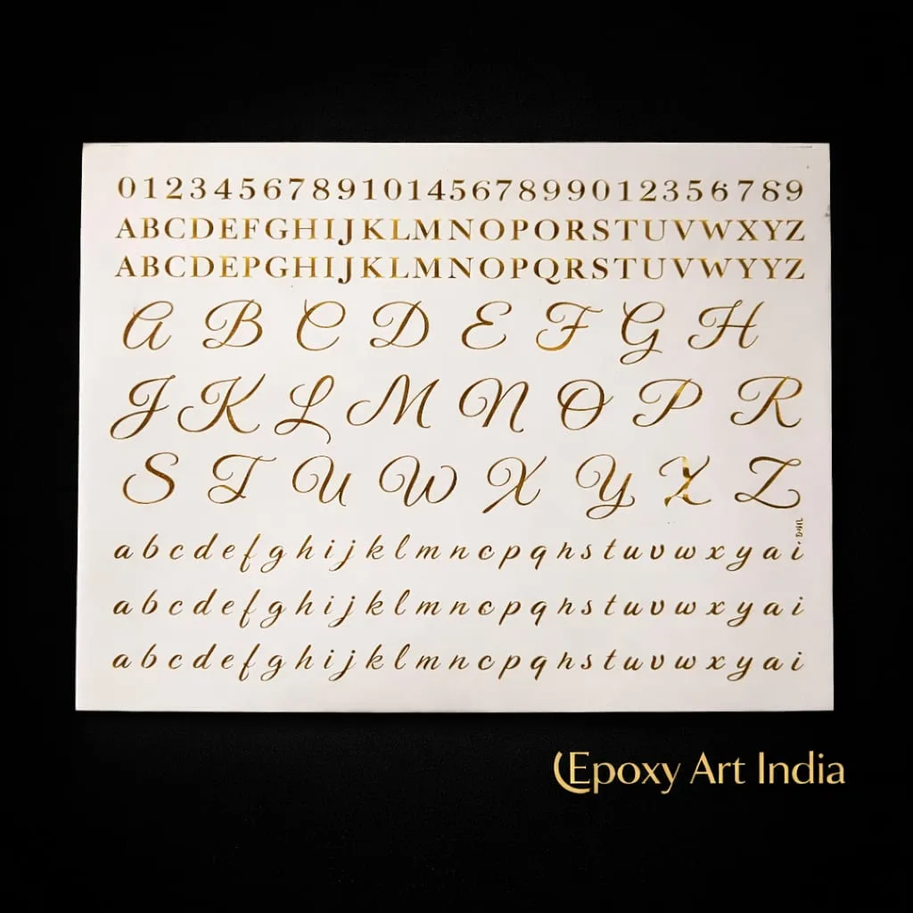 Alphabet Embossed Gold Sticker Sheet for Resin Art