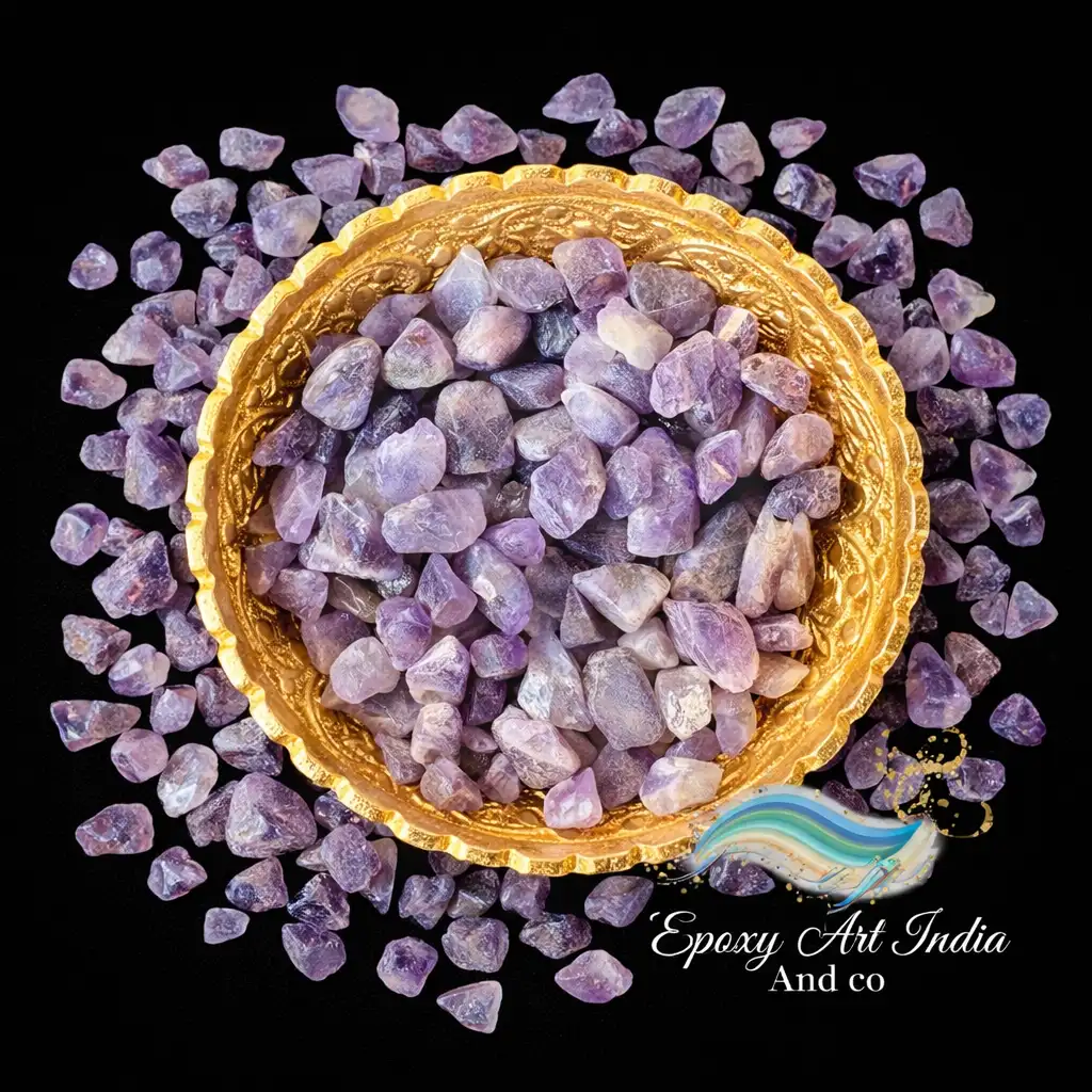 Amethyst Stone Chips (100gm) are beautiful purple crystal stones used in resin art and craft projects. These polished chips add a rich and elegant look to resin coasters, trays, geode art, jewelry, and DIY decorations.