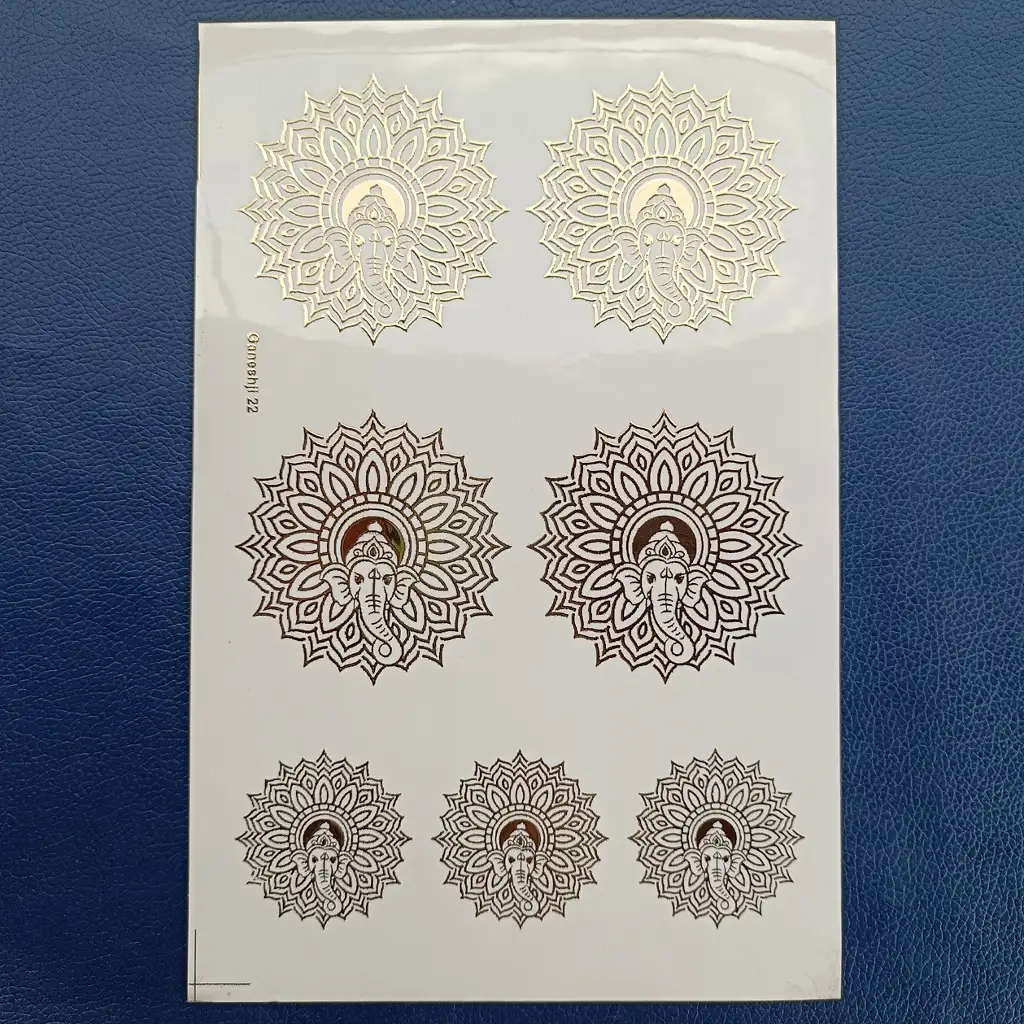 • Designer Ganesh Ji motif with embossed gold sticker