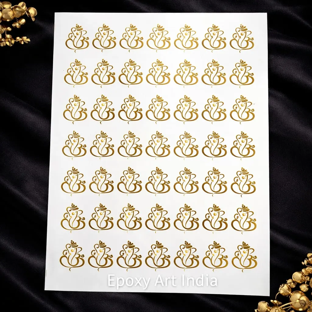Add a divine and elegant touch to your creative projects with this Embossed Gold Ganesh Ji Sticker Sheet from Epoxy Art India. These high-quality gold foil stickers feature detailed Ganesh Ji designs with an embossed finish that gives a premium and decorative look.