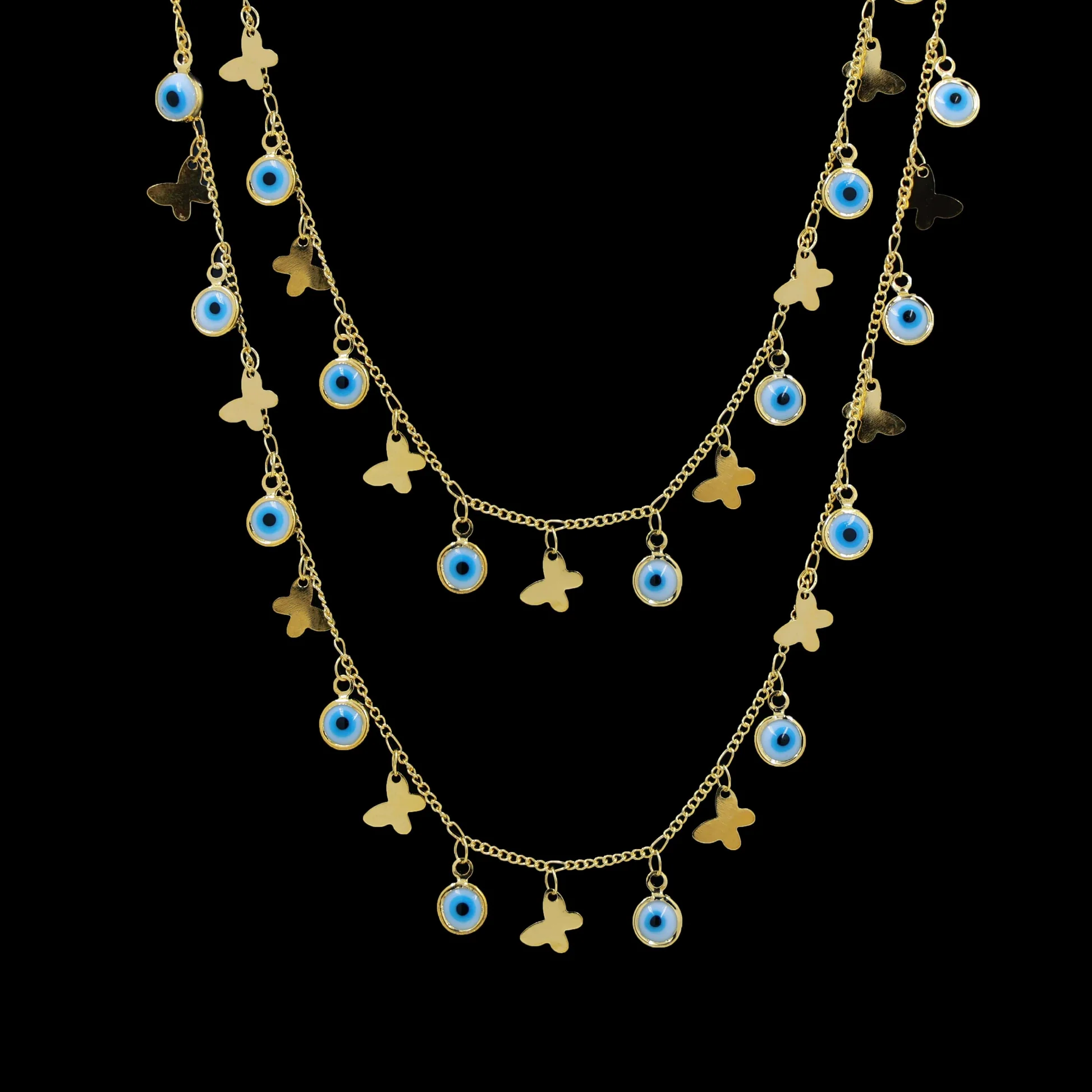 Design: Layered Necklace with Evil Eye & Butterfly Charms