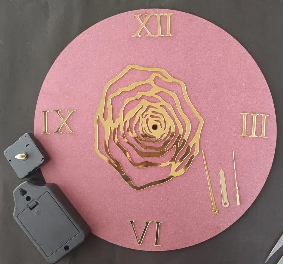 Machine, clock hands, acrylic cutout with the number, and machine cover.
