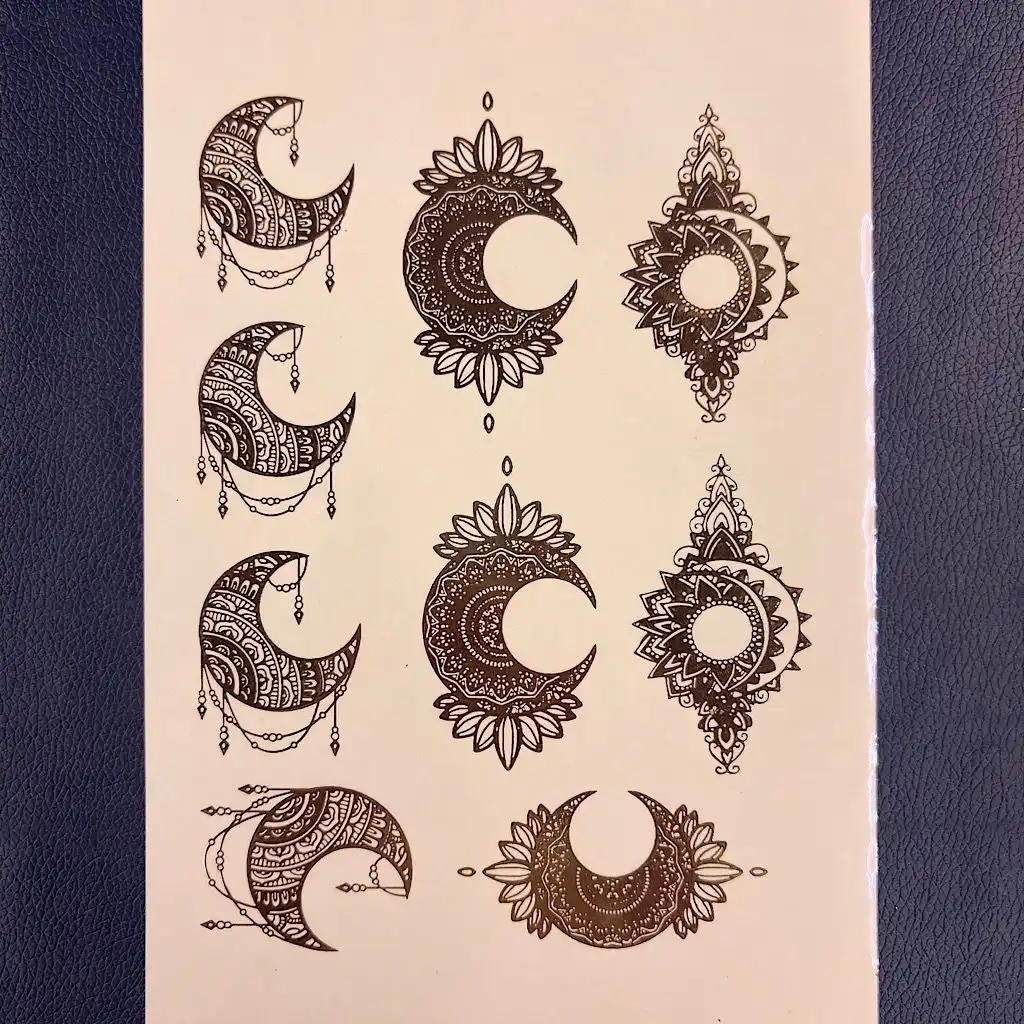 Enhance your creations with this Half Moon Embossed Gold Sticker, designed in a graceful crescent moon shape that symbolizes beauty and spirituality. The intricate detailing combined with a premium embossed gold metallic finish adds a luxurious and eye-catching touch to any project.