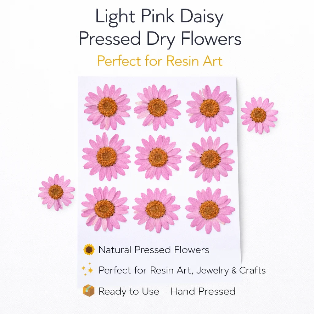 Each flower is carefully pressed and dried to retain its natural texture and charm, allowing easy embedding into epoxy resin designs. The light pink shade adds a subtle and elegant touch to resin jewelry, coasters, trays, bookmarks, and other DIY decorative pieces.
