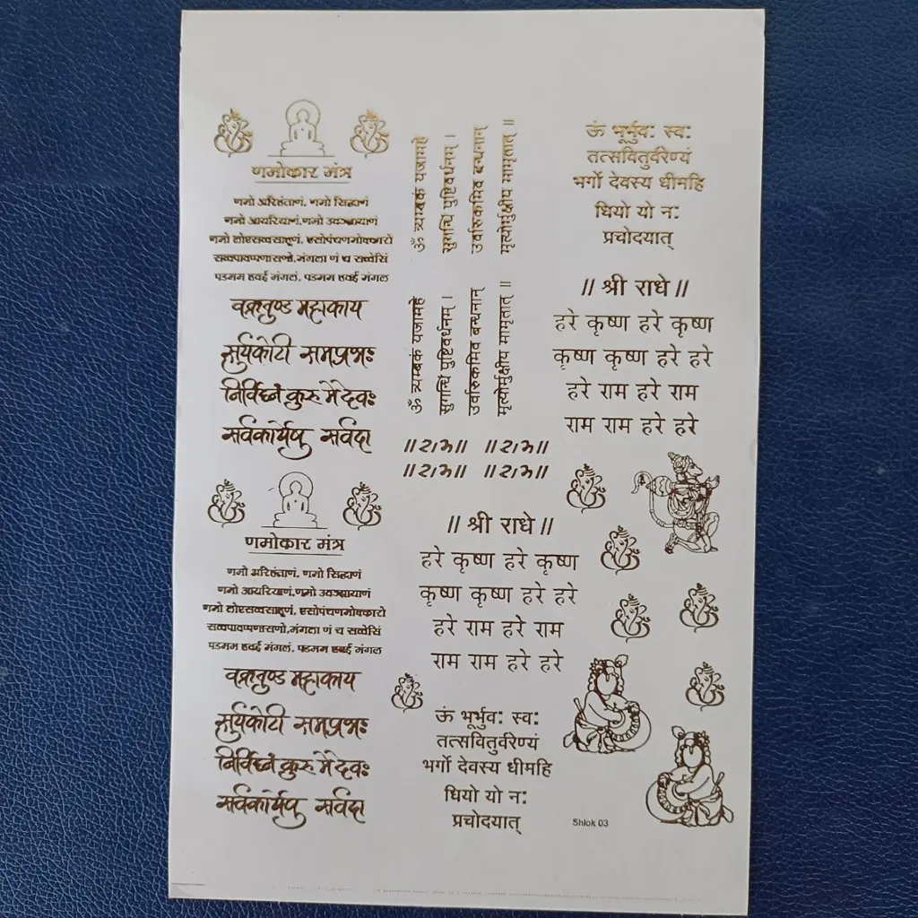 Add a divine and luxurious touch to your creations with this Mix Mantra Embossed Gold Sticker Sheet (A5 Size), specially crafted for resin art and spiritual DIY projects. This sheet features a collection of popular Sanskrit mantras and sacred symbols in a stunning embossed metallic gold finish, giving your artwork a rich and elegant look.