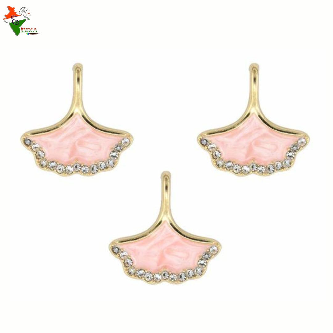 PINK GINKGO LEAF ENAMEL PENDANT CHARMS (SET OF 5)