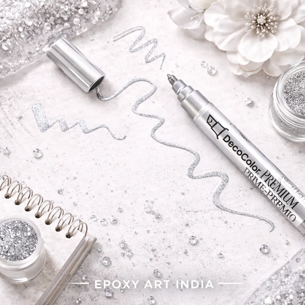 Silver Deco Metallic Marker for Resin Art | Silver Paint Pen for Coasters, Trays & Geode Art | Resin Art Supplies India