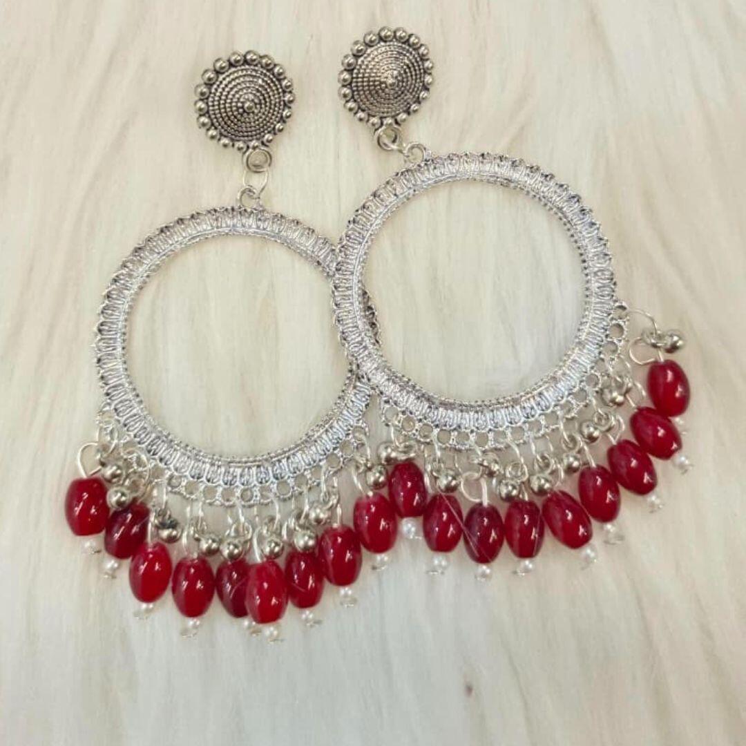 Comparesilver jhumka bezel with magenta beads in round shape