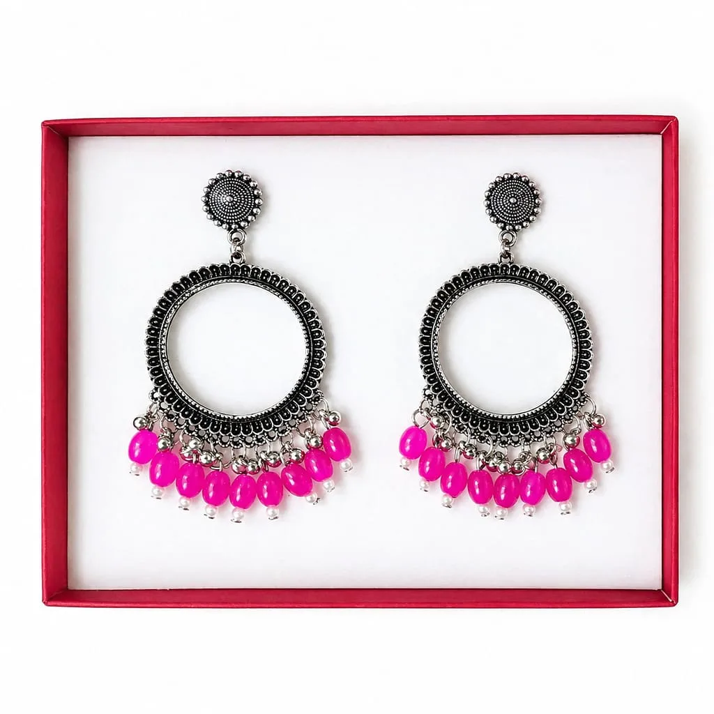 Silver Round Jhumka with Magenta Pink Beads for Resin Art